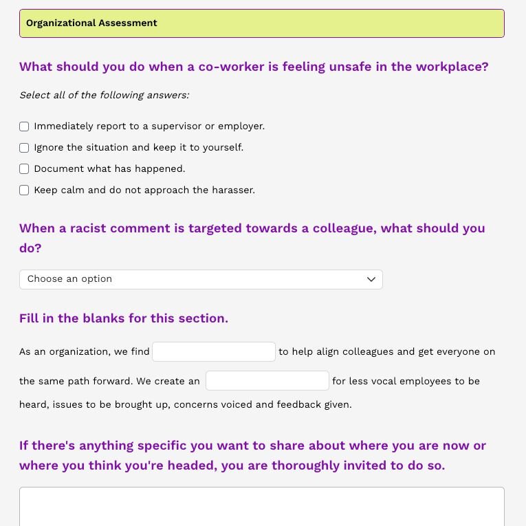 Our final piece of advice is to present exercises in different ways to keep your content engaging. If you’re finding a lot of your content is requiring the same type of input, ask yourself: could this response be a slider, a checkbox, or a table to provide some variety?
